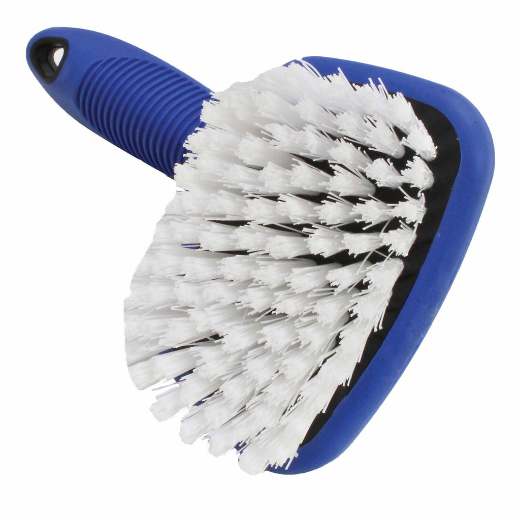 Είναι εξοπλισμένη με ανθεκτική λαβή από μαλακό καουτσούκ PVC, η οποία προσφέρει ασφαλές και αντιολισθητικό κράτημα, αποτρέποντας την ολίσθηση ακόμη και όταν είναι βρεγμένη. Η βούρτσα μπορεί να χρησιμοποιηθεί με ειδικά χημικά καθαριστικά για τροχούς.