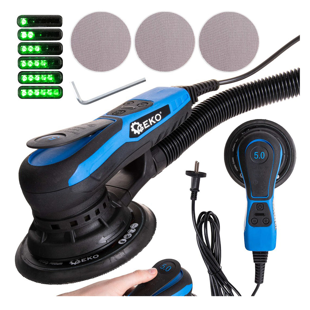 Διαθέτει μοτέρ χωρίς ψήκτρες (brushless) και τροχιά 5 mm, επιτρέποντας ομοιόμορφη αφαίρεση υλικού από ξύλο, χρώμα, βερνίκι, σοβά ή σκουριά.