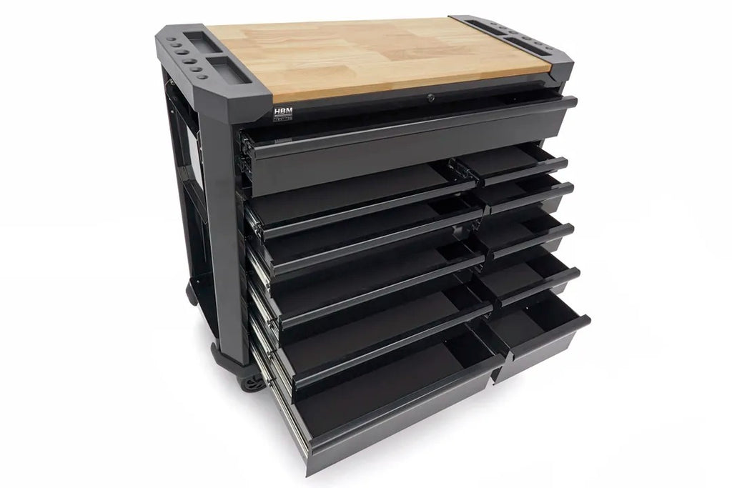Εργαλειοφόρος Τροχήλατος Με 11 Συρτάρια Και Πάγκο Εργασίας 109cm HBM MACHINES