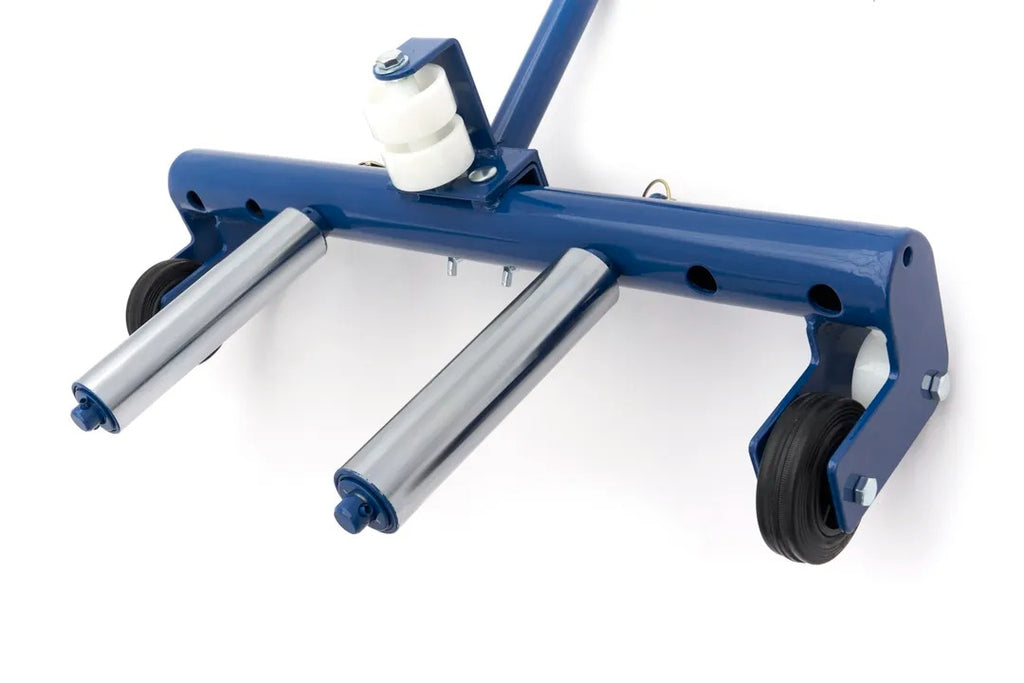 Η κατασκευή από ατσάλι A3 προσφέρει σταθερότητα και αντοχή σε εντατική χρήση, ενώ το ρυθμιζόμενο σύστημα σύσφιξης επιτρέπει την προσαρμογή του πλάτους μεταξύ 290 mm και 620 mm, ώστε να ταιριάζει σε διάφορα μεγέθη τροχών. Οι στιβαροί τροχοί στη βάση προσφέρουν ευκινησία και έλεγχο κατά τη μετακίνηση, εξασφαλίζοντας ασφαλή μεταφορά των βαρέων εξαρτημάτων εντός του χώρου εργασίας.