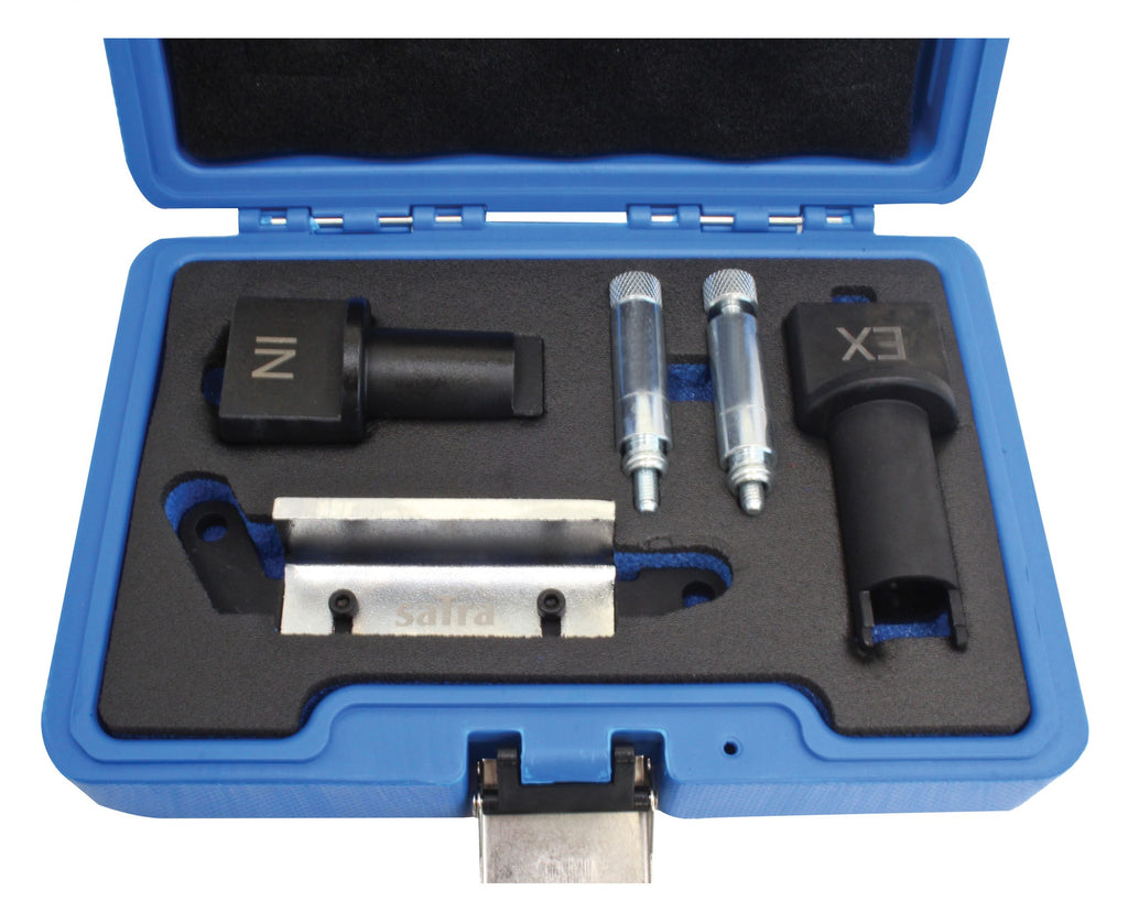 Το Κιτ Χρονισμού Εκκεντροφόρου VAG 1.0/1.2/1.4/1.6 προορίζεται για βενζινοκινητήρες TSi με 3 και 4 κυλίνδρους της σειράς VAG. Χρησιμοποιείται για τον σωστό συγχρονισμό και τον έλεγχο των εκκεντροφόρων και είναι συμβατή με το κιτ Satra S-VG15T (GB19375), το οποίο χρησιμοποιεί μανόμετρο και βάση για ακριβείς ρυθμίσεις. Η εφαρμογή αυτής της μεθόδου, σύμφωνα με τη διαδικασία, εξαλείφει την ανάγκη παρέμβασης στο σύστημα OBD.