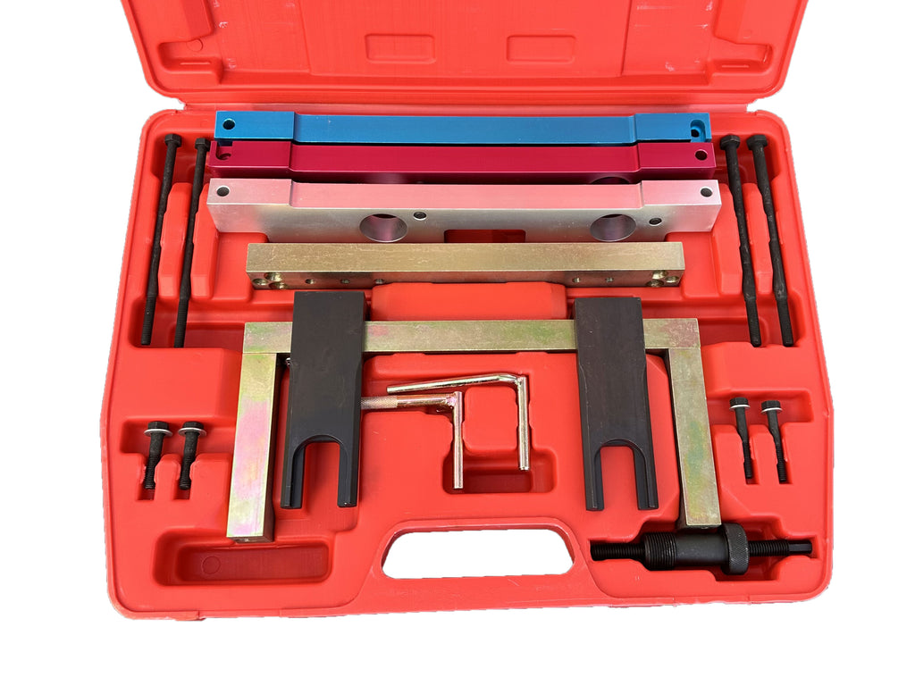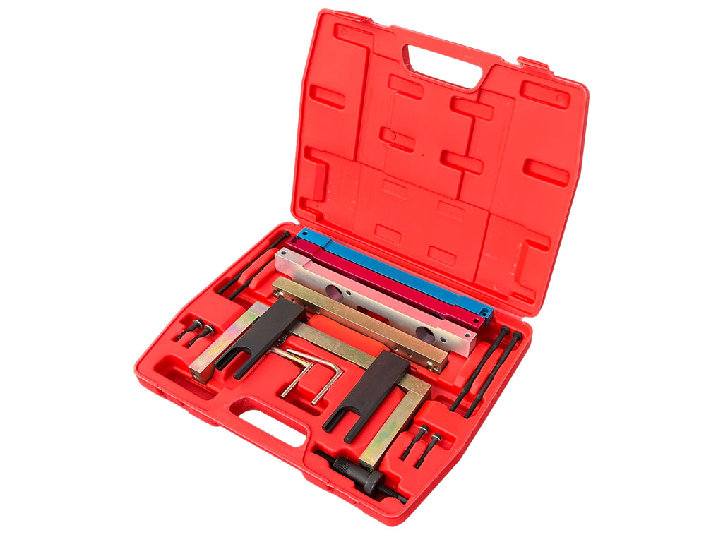 Το Κιτ Χρονισμού BMW 2.5 3.0 Βενζίνης N51 N52 N52K N53 N54 GEBO TOOLS είναι σχεδιασμένο για κινητήρες βενζίνης BMW 2.5 και 3.0 λίτρων των σειρών N51, N52, N52K, N53, N54 και N55, εξοπλισμένους με σύστημα Valvetronic και, σε ορισμένες περιπτώσεις, με τεχνολογία TwinPower Turbo. Το σετ αυτό επιτρέπει την ακριβή ρύθμιση του χρονισμού εκκεντροφόρων στη θέση ΑΝΣ (άνω νεκρό σημείο), διασφαλίζοντας σωστή και ασφαλή παρέμβαση στο σύστημα διανομής.