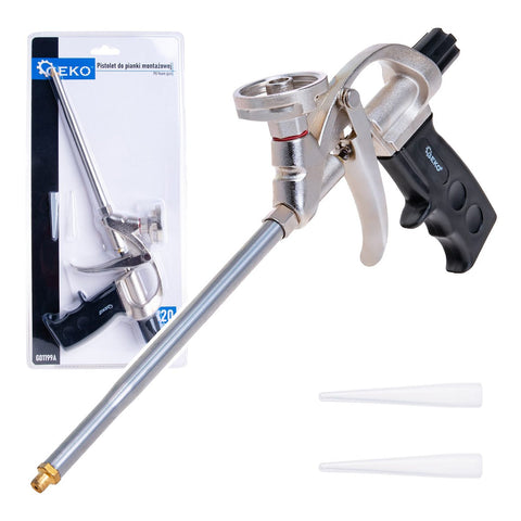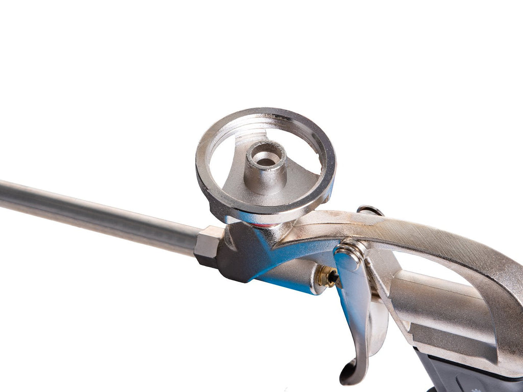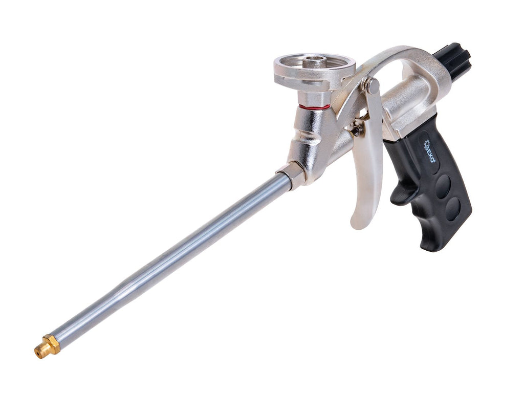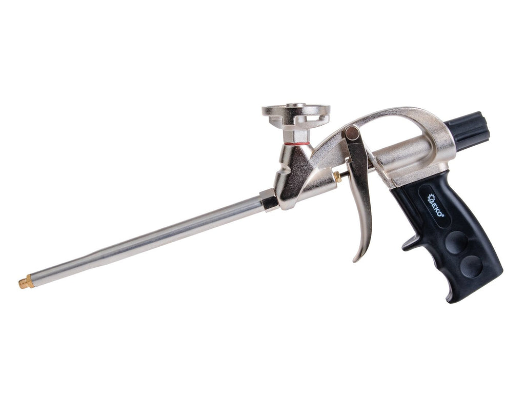 Αυτό το ΠΙΣΤΟΛΙ ΕΦΑΡΜΟΓΗΣ ΠΟΛΥΟΥΡΕΘΑΝΙΚΟΥ ΑΦΡΟΥ είναι κατασκευασμένο από ορείχαλκο, ανοξείδωτο ατσάλι, αλουμίνιο και πλαστικό και διαθέτει επικάλυψη PTFE. Έχει μήκος 32 cm και επιτρέπει την εφαρμογή αφρού σε δυσπρόσιτα σημεία. Ο ρυθμιστής ροής επιτρέπει τον έλεγχο της ποσότητας του υλικού που εφαρμόζεται. Η εργονομική λαβή προσφέρει ασφαλές και άνετο κράτημα.