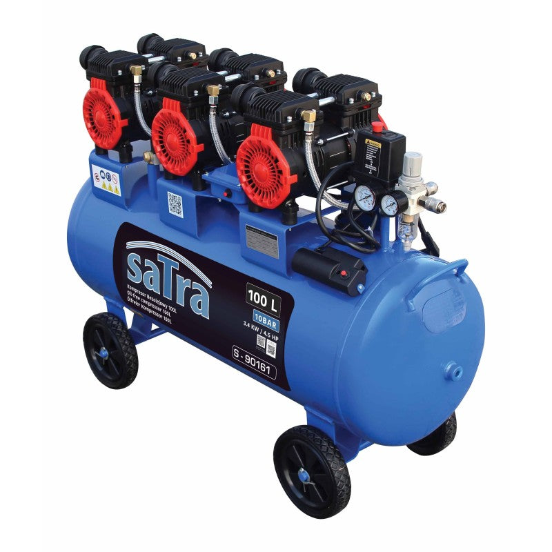 Αεροσυμπιεστής Χαμηλού Θορύβου Χωρίς Λάδι 100L 3400W SATRA