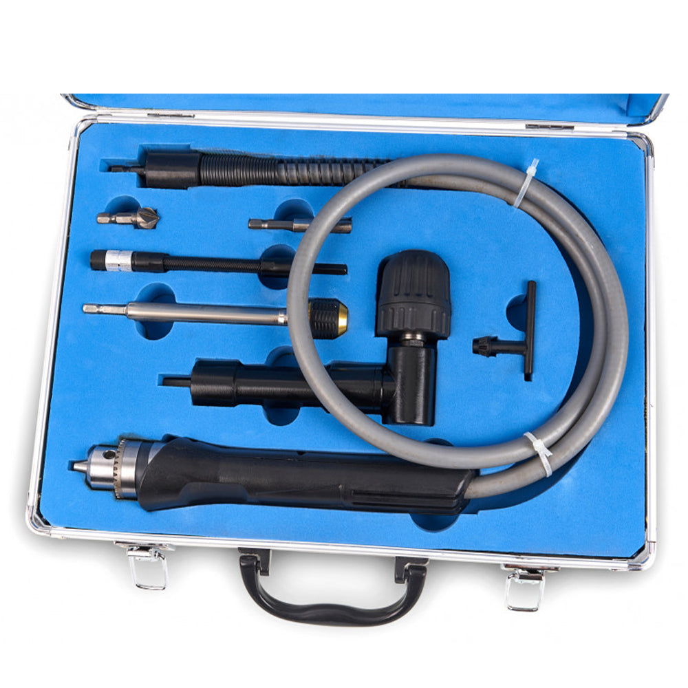 Τα στοιχεία που περιλαμβάνονται στο σετ είναι τα εξής: γωνιακός προσαρμογέας με γρήγορη σύσφιξη, εύκαμπτος σωλήνας, μαγνητική βάση για μύτες 150 mm, εύκαμπτη μαγνητική βάση για μύτες, μαγνητική βάση για μύτες, φρέζα 12,5 mm και ένα κλειδί.