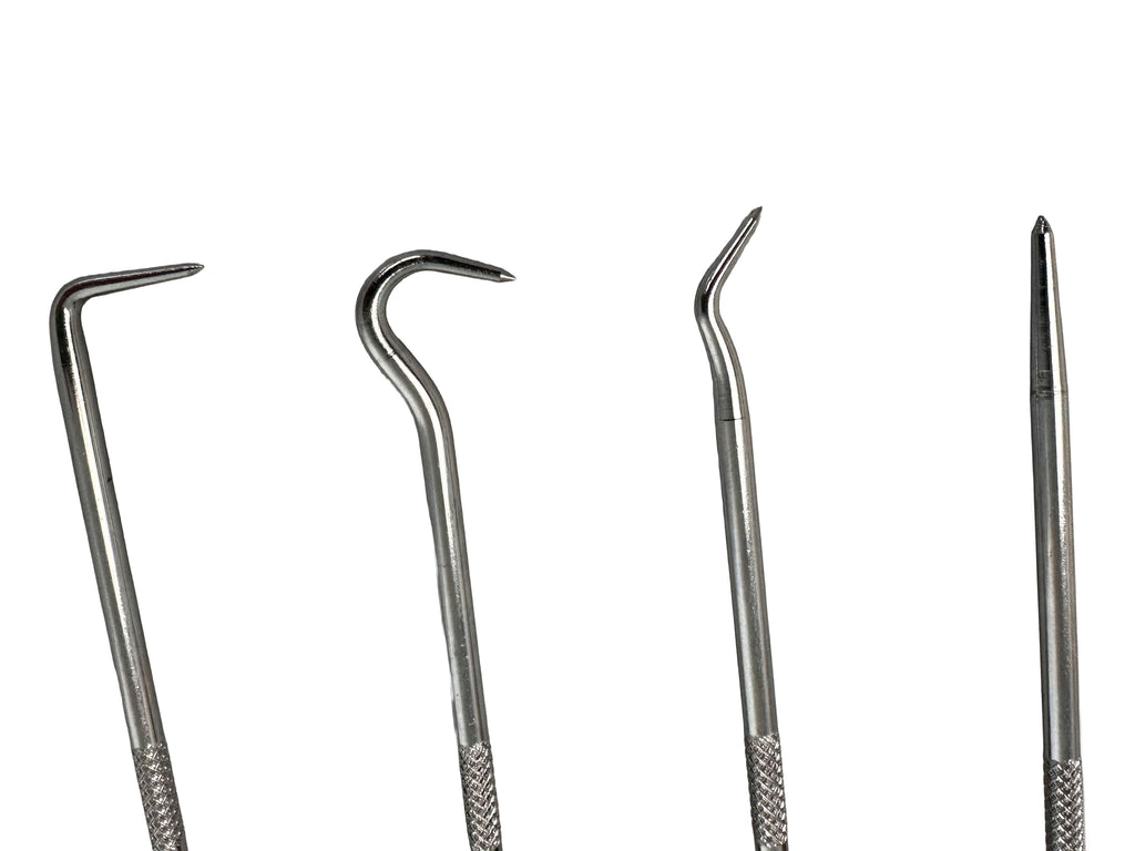 Τo Σετ Εργαλεία Αφαίρεσης Τσιμούχας 4Τμχ GEBO TOOLS έχει σχεδιαστεί για εργασίες ακριβείας και αποτελεσματική αφαίρεση τσιμουχών, δακτυλίων στεγανοποίησης και παρόμοιων εξαρτημάτων. Το σετ περιλαμβάνει τέσσερις τύπους εξωλκέων: έναν ίσιο, έναν με γωνία 45°, έναν με γωνία 90° και έναν με γωνία 180°, καλύπτοντας ένα ευρύ φάσμα εφαρμογών και επιτρέποντας πρόσβαση σε δυσπρόσιτα σημεία. Το μήκος τους είναι 160 mm και η διάμετρος του εξωλκέα είναι περίπου 3,5 mm.