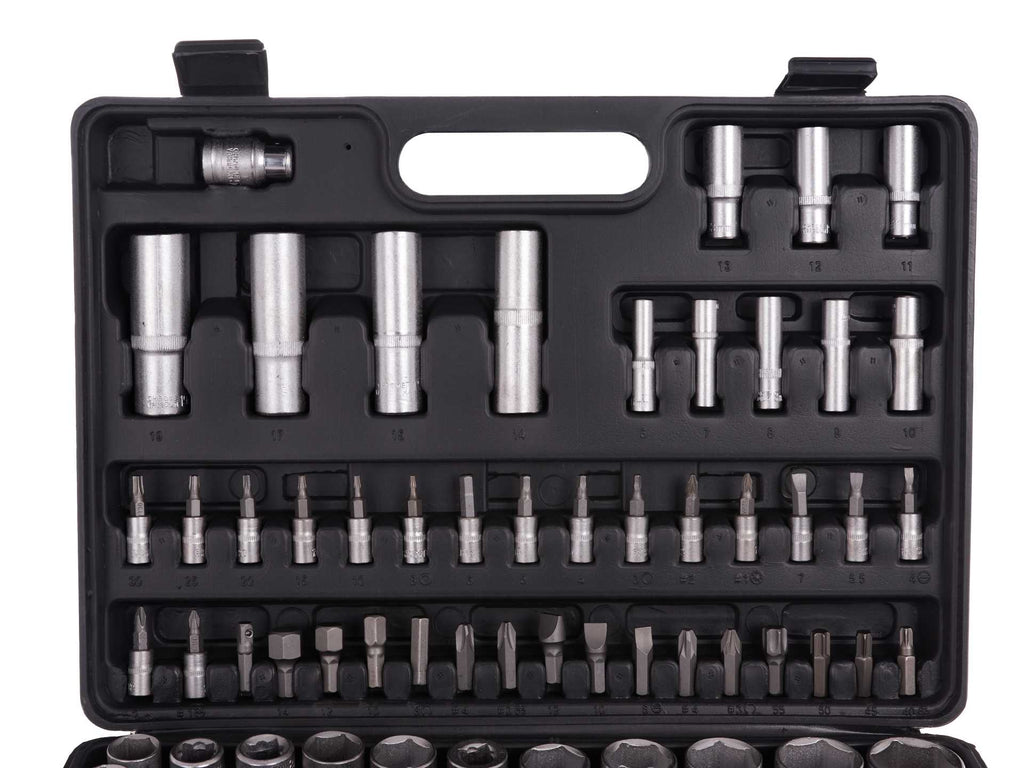 Αυτό το Σετ Εργαλείων Με Καρυδάκια Και Καστάνιες 1/4" 1/2" 94Τμχ HEIDMANN είναι κατασκευασμένο από ατσάλι χρωμίου-βαναδίου (Cr-V), προσφέροντας αντοχή και μακροχρόνια διάρκεια ζωής. Περιλαμβάνει δύο καστάνιες 1/4" και 1/2" με 24 δόντια και μηχανισμό γρήγορης απελευθέρωσης, καθώς και καρυδάκια στάνταρ και βαθιά, προεκτάσεις, αρθρώσεις, αντάπτορες και μύτες από ατσάλι θερμικής κατεργασίας.