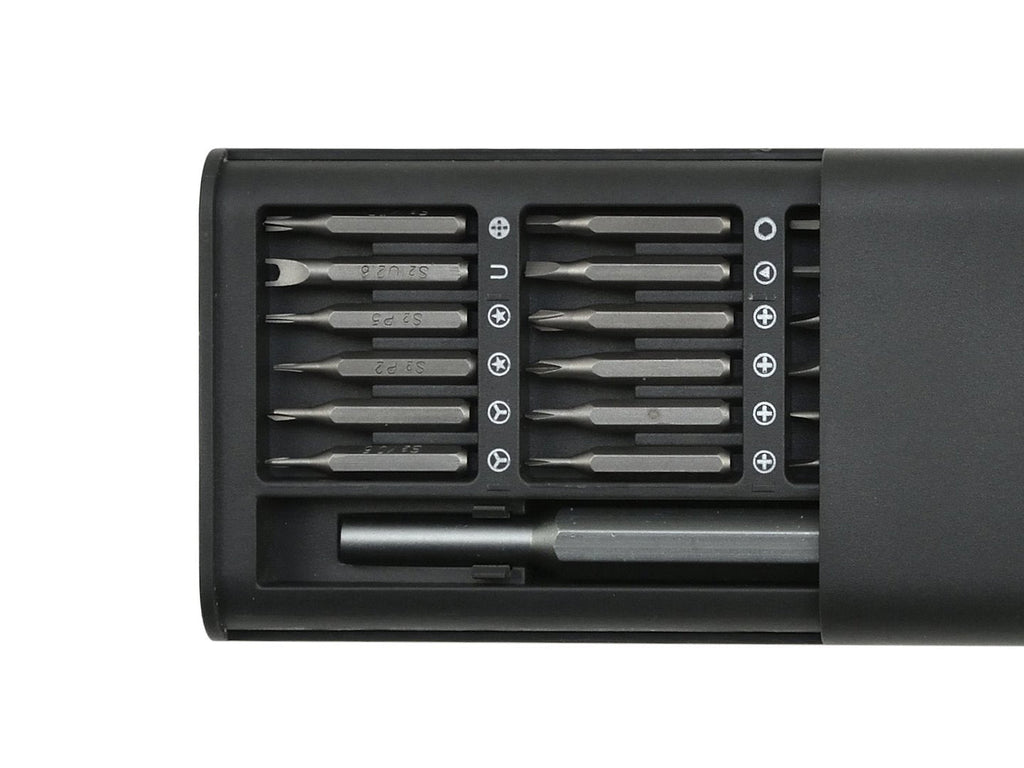 Αυτό το Σετ Κατσαβίδια Ακριβείας Με 25 Εναλλάξιμες Μύτες περιλαμβάνει διάφορους τύπους ακριβείας κατάλληλους για την επισκευή τηλεφώνων, φορητών συσκευών, laptop, αλλά και μικρών αντικειμένων όπως ρολόγια και γυαλιά. Οι μύτες είναι κατασκευασμένες από πυριτιούχο ατσάλι S2 και περιλαμβάνουν 9 κατηγορίες: Phillips (PH000, PH00, PH0, PH1), Τύπου Y (Y0.6, Y2.0), Ίσιο (SL1.5, SL2.0, SL2.5), Πεντάλφα (P2, P5), Torx (T2, T3, T4, T5, T6, T8), Εξάγωνο (H1.5, H2.0, H2.5), Τρίγωνο (Tr2.3), U2.6 και MID. Όλα τα εξαρτήματα είναι οργανωμένα σε μαγνητική θήκη.