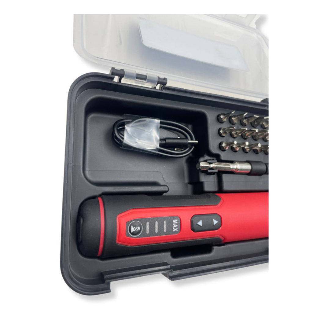 Αυτό το Σετ Κατσαβίδι Ηλεκτρικό Με Μπαταρία Επαναφορτιζόμενη 3.6V Με 27 Κεφαλές KB GLOBAL λειτουργεί με μπαταρία λιθίου τύπου 18650, χωρητικότητας 1.5 Ah, η οποία φορτίζεται πλήρως σε 3–4 ώρες μέσω θύρας USB-C. Το κατσαβίδι αποδίδει μέγιστη ροπή 6 Nm και διαθέτει ταχύτητα χωρίς φορτίο 300 στροφές/λεπτό.