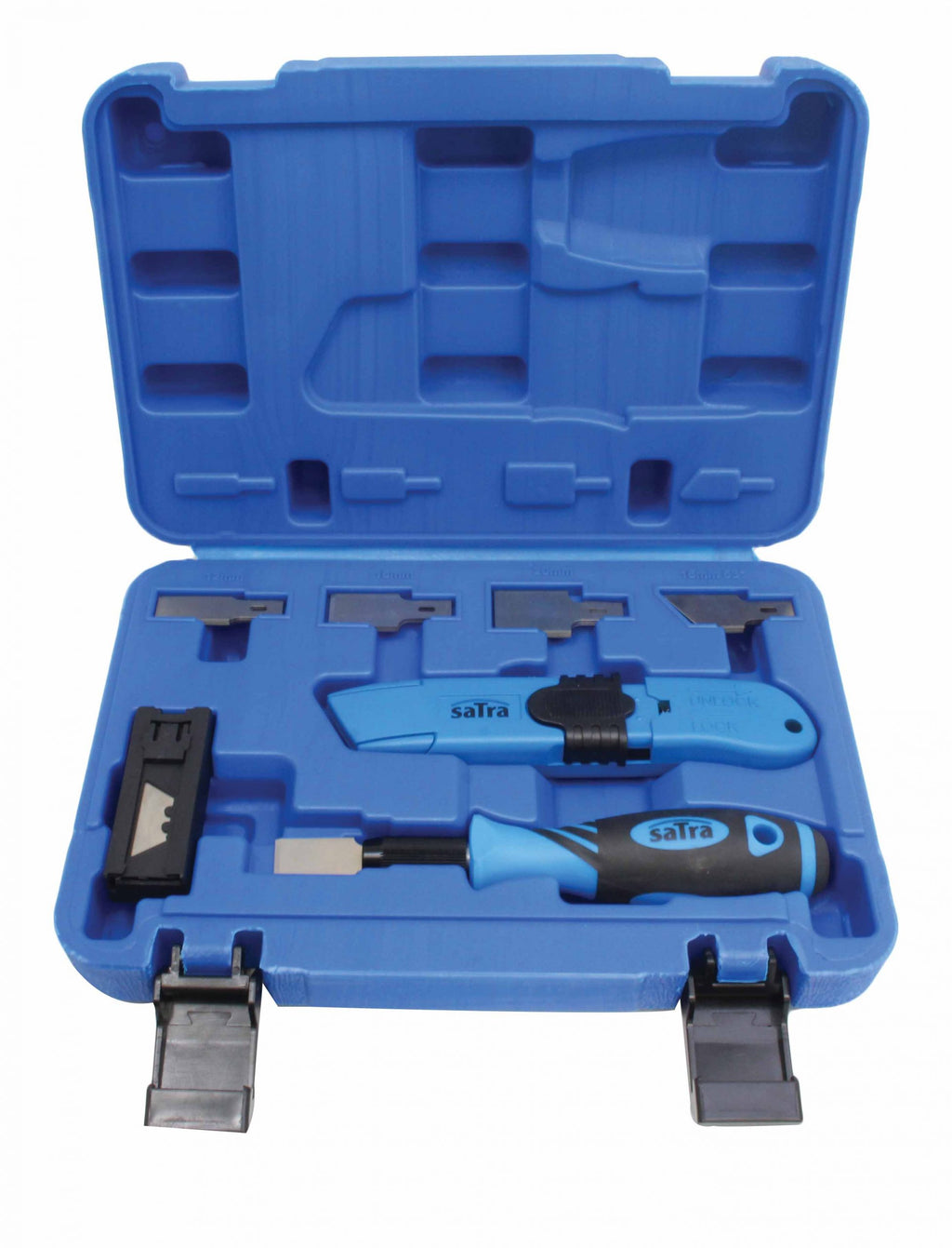 Οι λεπίδες είναι κατασκευασμένες από ατσάλι υψηλής αντοχής και μπορούν να αντικατασταθούν γρήγορα, χωρίς πρόσθετα εργαλεία. Οι εργονομικές και αντιολισθητικές λαβές προσφέρουν άνεση και ασφάλεια στη χρήση. Το σετ είναι συσκευασμένο σε συμπαγές και ανθεκτικό κουτί με κλείδωμα, το οποίο επιτρέπει την εύκολη αποθήκευση και οργάνωση των εξαρτημάτων. Η τρούσα προορίζεται για κοπή καλωδίων, συρμάτων, μονώσεων, χαλιών, ταπετσαρίας, χαρτονιού ή μεμβρανών, αλλά και για μοντελισμό, συσκευασία και άλλες εργασίες ακριβείας.