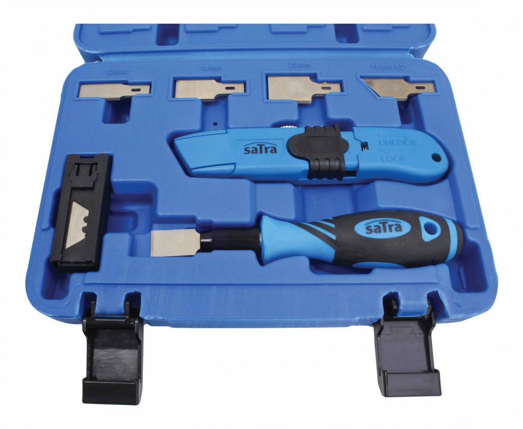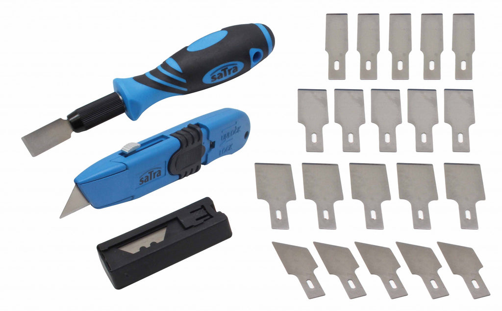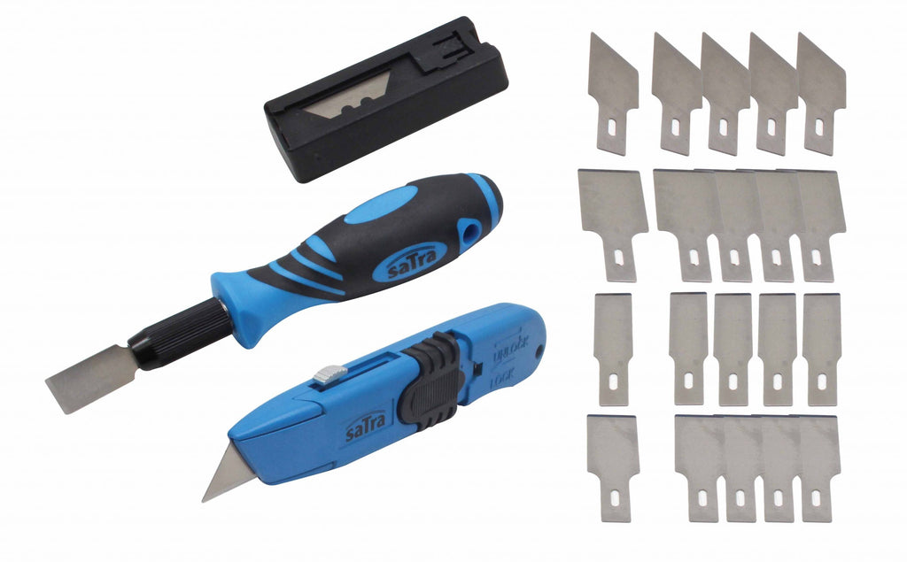 Το Σετ Ξύστρα Και Κόφτης 30Τμχ SATRA είναι σχεδιασμένη για κοπές και φινίρισμα, κατάλληλη τόσο για επαγγελματική χρήση όσο και για hobby ή οικιακές εργασίες. Περιλαμβάνει μεταλλικό κοπίδι με εργονομική λαβή και τριπλή προέκταση λεπίδας, ξύστρα με εργονομική λαβή και υποδοχή λεπίδας με γρήγορη απελευθέρωση, δοχείο για λεπίδες και σετ ανταλλακτικών λεπίδων: 5 τεμάχια 12 mm, 6 τεμάχια 16 mm, 5 τεμάχια 20 mm και 5 τεμάχια 16 mm με λοξότμηση 53°, καθώς και 6 επιπλέον λεπίδες κοπιδιού.