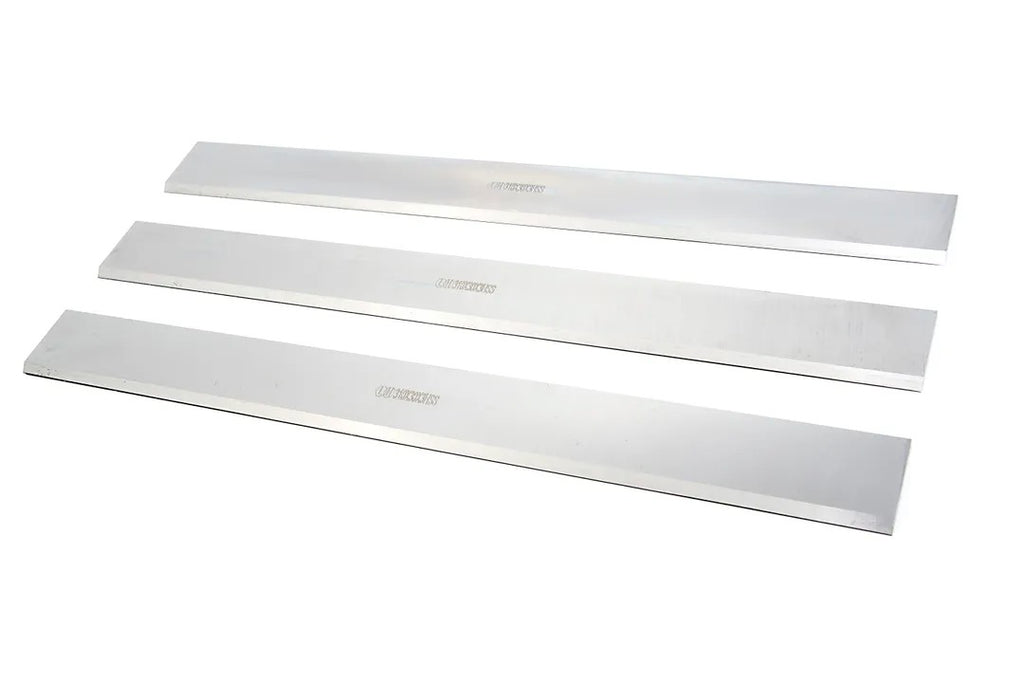 Το Σετ Λεπίδες Για Πλάνη HBM 300 01054 MODEL 1 περιλαμβάνει τρία τεμάχια με πάχος 3 mm. Κάθε μαχαίρι έχει μήκος 310 mm και πλάτος 30 mm, σχεδιασμένο για συμβατή χρήση με τον συγκεκριμένο εξοπλισμό.