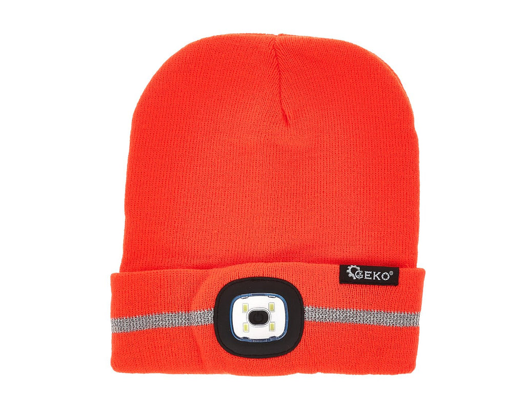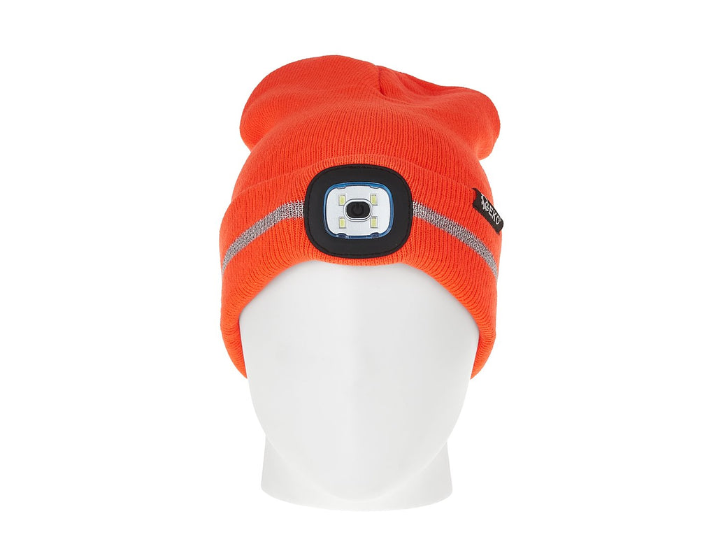 Ο Σκούφος Με Φακό Επαναφορτιζόμενο Ανακλαστικό Φως Led, σε πορτοκαλί χρώμα, είναι κατασκευασμένος από μαλακό ακρυλικό ύφασμα, που προσφέρει θερμική άνεση και προσαρμόζεται εύκολα στο σχήμα του κεφαλιού.