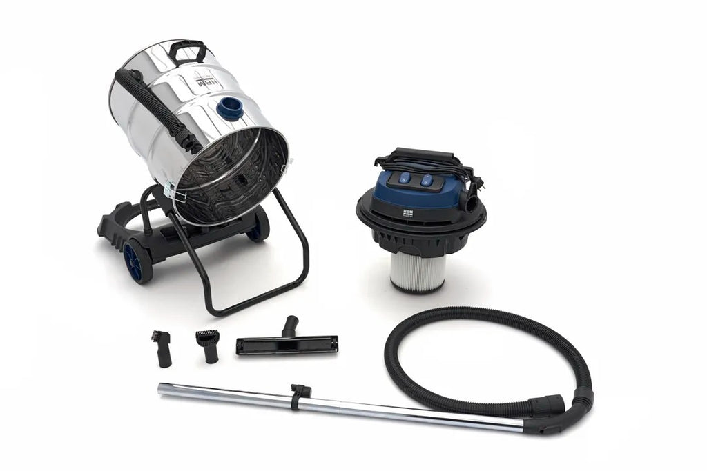 Η καθαρή μάζα της συσκευής είναι 16.8 kg και μεταφέρεται εύκολα χάρη στον μεταλλικό σκελετό με ρόδες. Η στάθμη θορύβου είναι 85 dB. Το καλώδιο τροφοδοσίας VDE έχει μήκος 3.5 μέτρα, ενώ ο εύκαμπτος σωλήνας απορρόφησης έχει διάμετρο 32 mm και μήκος 1.5 m. Περιλαμβάνονται δύο μεταλλικά σωληνάκια μήκους 50 cm το καθένα.